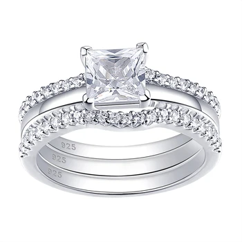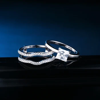 All the colors of the Solitaire Princess Cut Engagement Rings Set on the photos are true to life. Please note, however, that the screen calibration of your device may distort them a little.